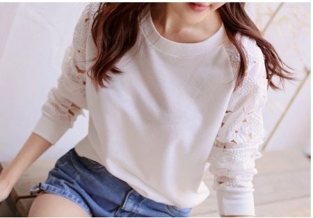 Knitted white blouses are usually decorated with fashionable complex patterns to add brightness, make it original and unique.