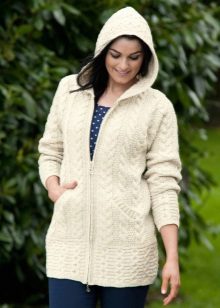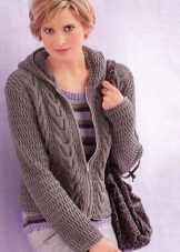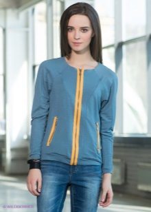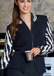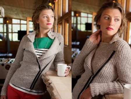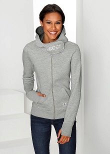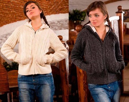 The classic sports model of a sweater with a zipper provides for the presence of a hood or stand-up collar. The sleeves and the bottom of the sweater are additionally finished with knitted or knitted cuffs.