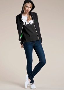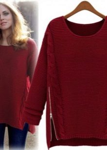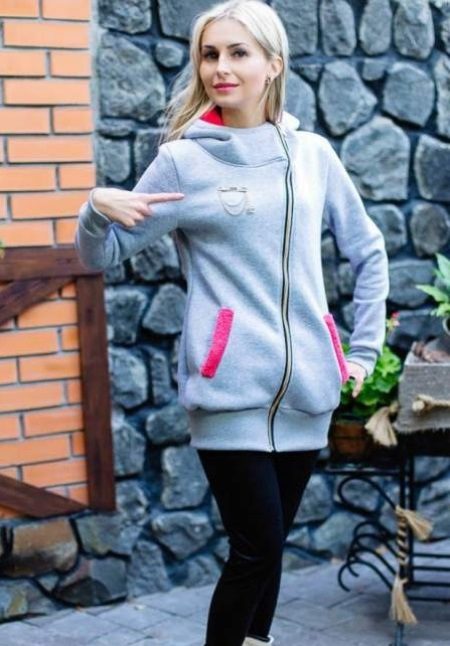 Elongated sweatshirts with zippers resemble a knitted coat. They are very stylishly combined with trousers and skirts.