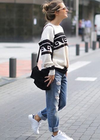 A sweater with lace sleeves combined with jeans is a great option for every day.