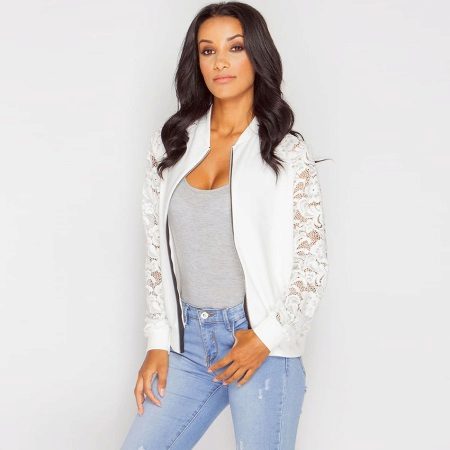 Today, a lace sweater with a zipper can be found in a variety of combinations.