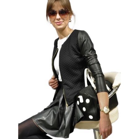 One of the most stylish and creative models is a jacket made of quilted knitwear or other material with sleeves made of leather. Such a jacket looks unusually expensive and stylish. Sleeves can be made in the tone of a jacket or of contrasting skin color.