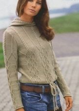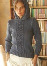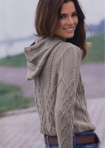 Complementing the hood of any knitted sweater makes the product more interesting and attractive. As a rule, for the manufacture of such clothes use threads containing at least 50-60% wool. On such sweaters, there are often openwork inserts or braids.