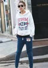 - Sweatpants and sneakers. Having supplemented them with a sweater with a hood, you can go for a run.