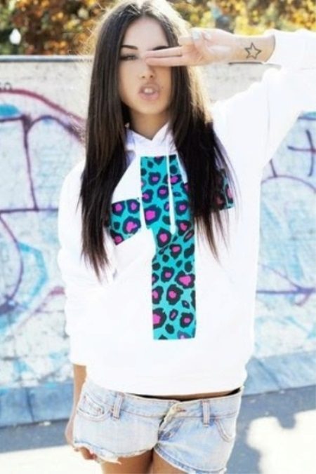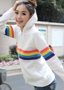 - Sweatshirts with a hood can be called universal clothing, as they can be worn at any age and with any type of figure.