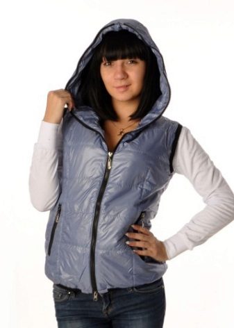Without sleeves. Such sweatshirts with a hood are bought both for the summer period and for the off-season, wearing with turtlenecks and golfs. Such sleeveless jackets are in demand among athletes and can be called hoodies, hoodies or vests.