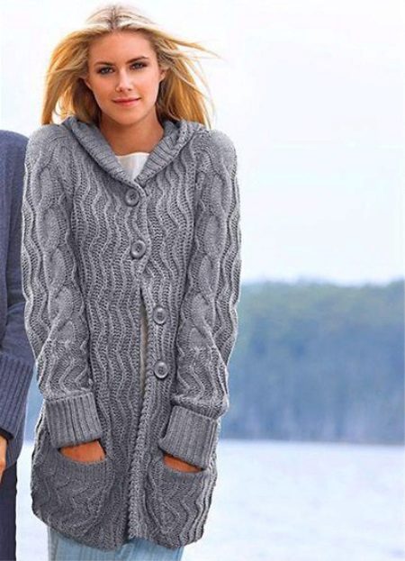 Often knitted sweaters with a hood are fastened with buttons, but there are also models with hooks or a “snake”.