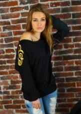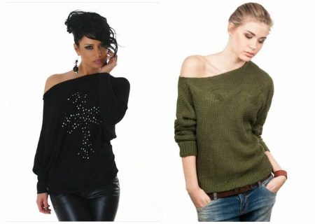 Models of sweatshirts with an open shoulder sometimes even more attract attention than if this were a model that completely exposes the shoulders. What is the secret here? Probably in the female zest, mystery, the ability to file oneself. The variety of styles of such sweaters is amazing.