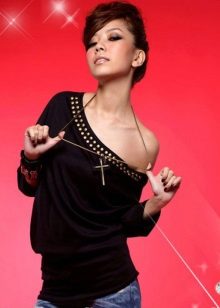 And this is despite the versatility of this element of clothing. You can wear a jacket with an open shoulder on your own or with accessories, at work or at a social event. Today, beautiful sweaters in the style of an elegant casual are not uncommon. By choosing the right clothes, the set of which includes a blouse, you can create an elegant vibrant look.