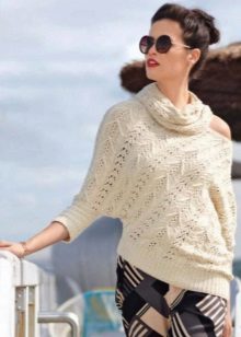 Fashionable, lightweight, comfortable sweaters have always been part of the women's wardrobe. The last time in trend is sweaters with open shoulders or one shoulder, with an open back. This outfit looks very stylish, subtle, romantic.