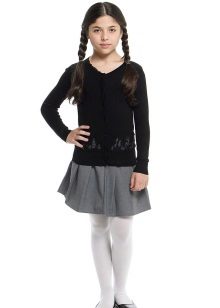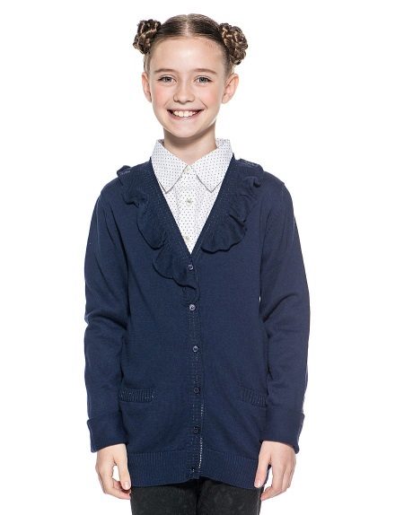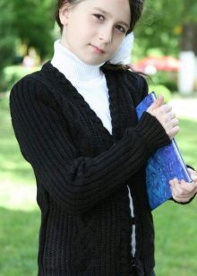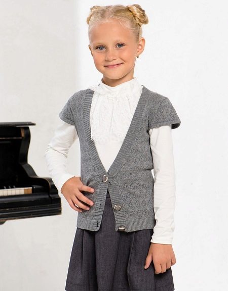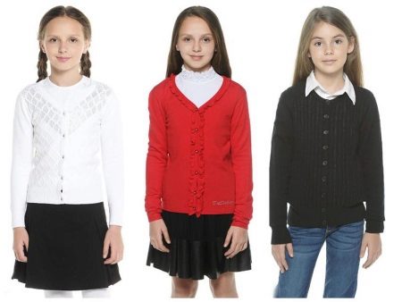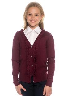 The assortment of school sweaters that are in demand today is represented by products from cotton, mixed or synthetic threads. Most often, girls buy sweaters that have a mixed composition, as they are easier to care for.