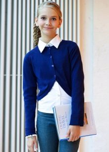 A classic jacket for a schoolgirl is a straight-cut product with long or shortened sleeves, as well as a fastener in the form of buttons, zippers or buttons.