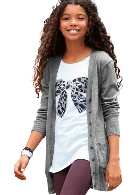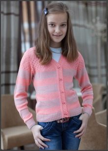 They differ in the density of the material, and shades, and the neck, and the length of the sleeves, and fasteners. Most often, teenagers are interested in sweater models that differ from others in some unusual details, for example, a special viscous, interesting decor or neckline. In the decor, sweaters for teenage schoolgirls use prints, embroidery, bows, ruffles, interesting buttons.