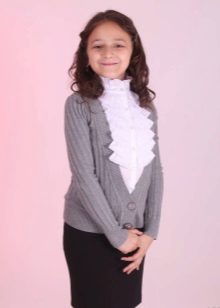 Most of the sweaters for the school are medium-length models, but if desired for the girl, you can find both an elongated model of sweatshirts and a shortened version.
