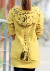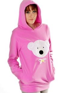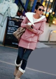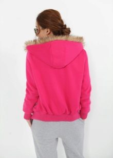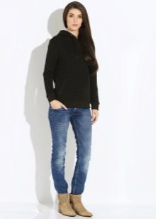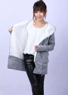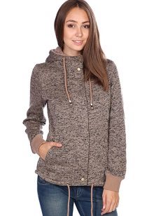 Warm sweatshirts: knitted or from a dense footer with fleece. Knitted patterns can carry out two functions. The first is to be independent outerwear in warm spring or early autumn. The second - instead of a sweater in the cold. Sweatshirts made of footer are also good at low temperatures, the hoods on them often turn around with fur and already play the role of a jacket.