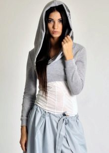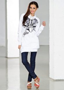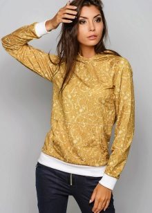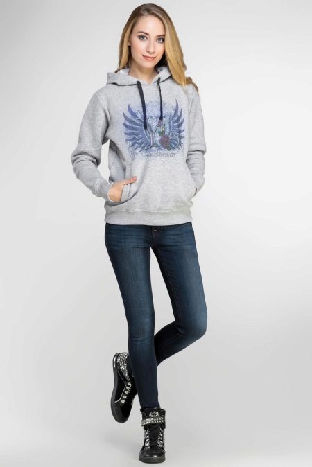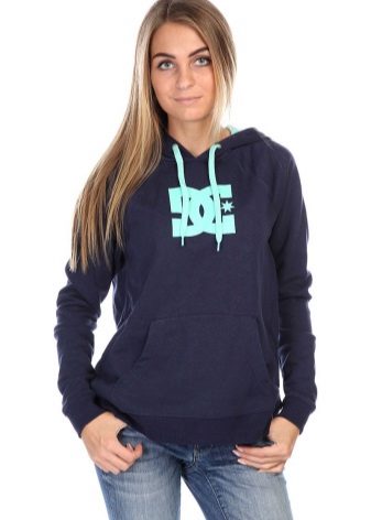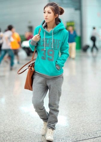 Therefore, a modern sweatshirt in a sports style is able to focus on the merits of the figure, to correct some of the shortcomings, to balance the proportions.