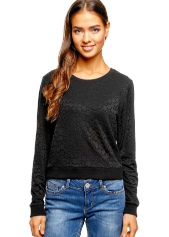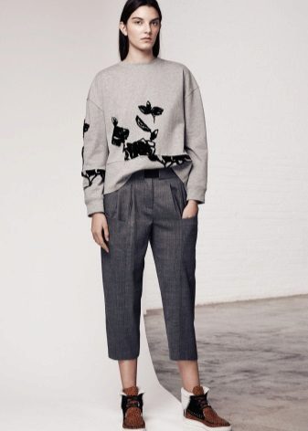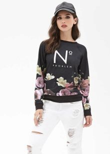 The sweatshirt looks like a sweatshirt, but has a looser cut and raglan. Some modern models have pockets and a hood. They are sewn from knitwear, add pile or fleece to the insulated ones, contain design elements in the form of graphic prints and ornaments.