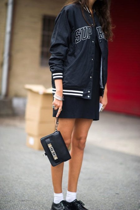 The formula of a fashionable bow: sports jacket + a variety of elements of a women's wardrobe. What can this thing be combined with?