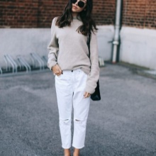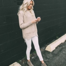 Classical color schemes do not leave the leading positions. Black, white, gray jacket will help to create a beautiful and elegant bow. Autumn and winter sweaters in white should be combined with snow-white shirts and cropped trousers of dark colors.