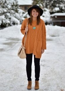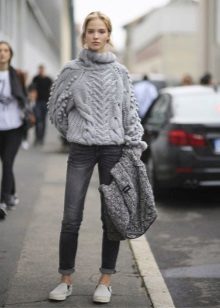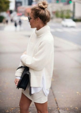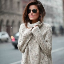 Among knitted clothes, sweater is in great demand. A distinctive feature is a high collar. The sweater is perfect for cold windy weather, no need to wear a scarf. It is represented by various styles, often has long sleeves.