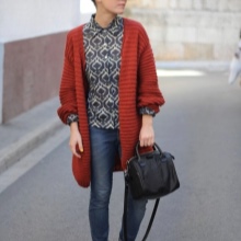 Cardigan is another type of warm sweatshirt. It can be buttoned or without fasteners, by smell. Some models are decorated with belts. Extra long cardigans can be used instead of jackets or coats. This item of knitted clothes will help keep you warm in any weather.