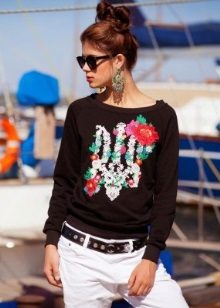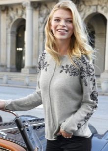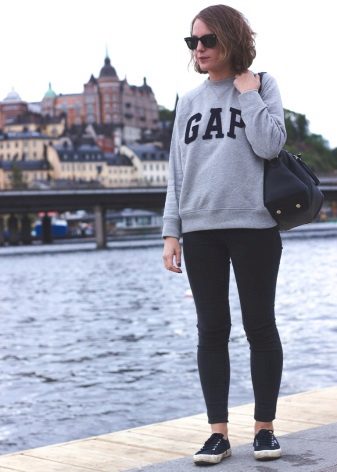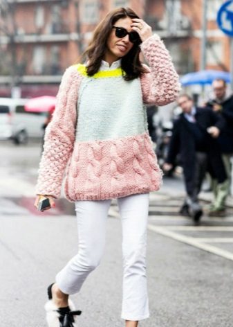 In the cold season, it is worth giving preference to elongated models, but do not refuse and shortened options that are suitable for translating the image into a retro style. Such sweatshirts look spectacular in combination with a cropped cardigan and checked trousers.