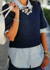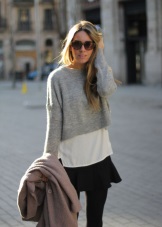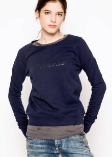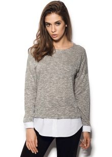 - Sweatshirt A feature of this variety of sweaters is an imitation of the presence of another piece of clothing under it. Most often - shirts. It can be a shirt collar or sleeves peeking from under such a sweater.