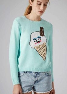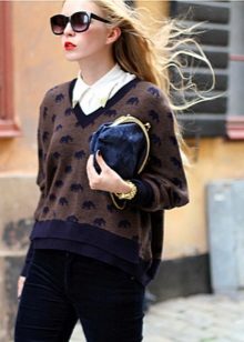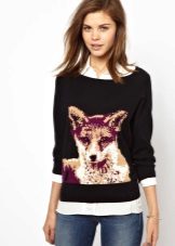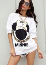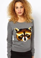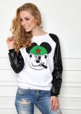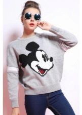 The infantilism inherent in modern trendy blouses dictates fashion for cartoon prints. Sweaters and sweatshirts with Mickey Mouse, his girlfriend Minnie, as well as other heroes of Disney and other popular cartoons are especially beloved by the fair sex. In addition, prints with deer, bears, foxes, raccoons, pandas are also in great demand.