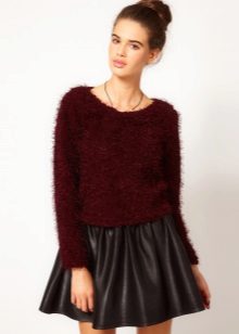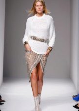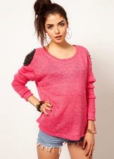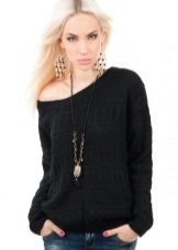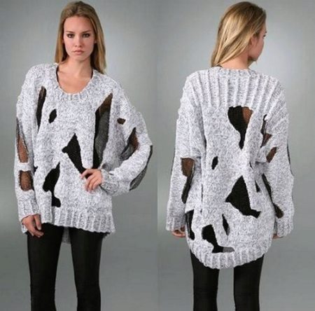 Another trend of the current season is oversized clothing. This loose-fitting pullover with a rounded neckline and decorative inserts made of transparent material is an example of topical solutions for going to a party in the cold season.