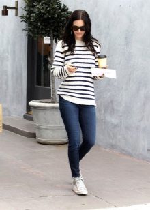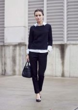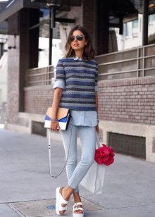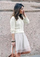 The ideal soulmate for any blouse will be a skirt. The main thing is a competent combination of volumes and forms. Jeans, pants and even dresses - all this will be very well in harmony with pullovers, sweatshirts, sweatshirts.