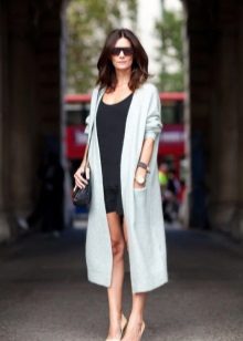 Elongated models slightly cover the buttocks. Most often, the choice of this length falls on cardigans, jumpers, sweatshirts. This season, more and more fashionable images are being built on the basis of knee-length blouses. This is a poncho, and undershirts, and hoodies. Cardigans and sweatshirts of this length are also of interest.