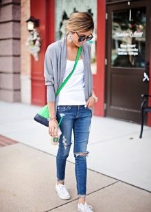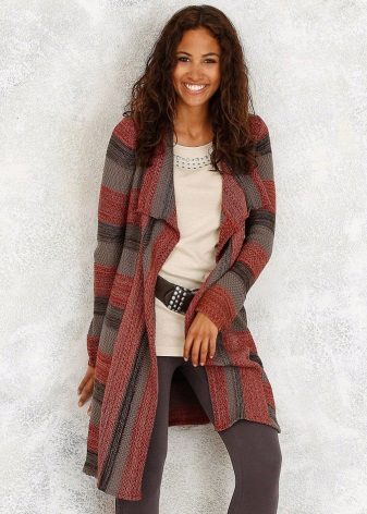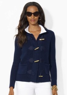 - Cardigan jacket. According to the dictionary definition, a cardigan is really a kind of sweater. It has a solid back and front, consisting of two halves, fastened with buttons or buttons, less often - with hooks or a zipper.
