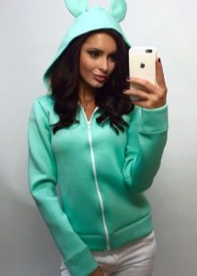 Among young girls, models with ears are very popular. As a rule, these are hoodies or hoodies, the hoods of which are decorated with these silly attributes. No less interesting decorative models of women's blouses can be called varieties of fluffy blouses with ears.