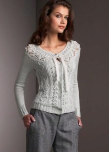 Buttons with buttons can be cardigans, jackets or boleros. Since the sweater is the name of the product fastened from bottom to top, such styles are most appropriately called sweaters. Another option for the fastener for a jacket is a zipper.