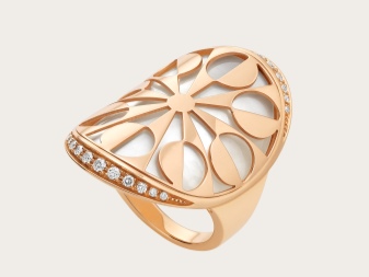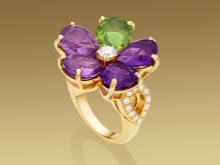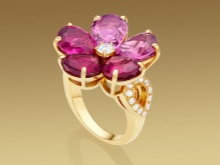 Reflection of brand favorite naturalistic motifs. Combinations of stones of various shades and shapes on elegant rings resemble lush and beautiful bouquets of flowers. Mostly pear-shaped stones are used, which imitate individual petals on flowers, crowned with a diamond core.