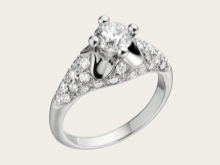 Laconic design dominated by majestic platinum. In the center of the frame on tiny paws, a voluminous diamond soliter is fixed. One of the most popular collections that romantic brides prefer.