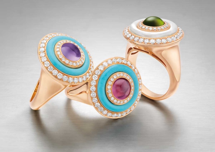 The most striking collections of the jewelry house are with colored stones, abundantly decorating the laconic foundations of the rings. These are the most luxurious collections, for the creation of which jewelers have shown all their imagination and the craziest ideas.