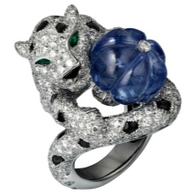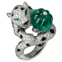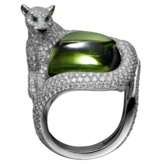 Non-trivial products with panther and leopard were made exclusively from noble materials: high-grade gold of various colors and platinum. Rings were decorated with various precious stones: diamonds, emeralds, garnets, sapphires, onyx and other natural gems.