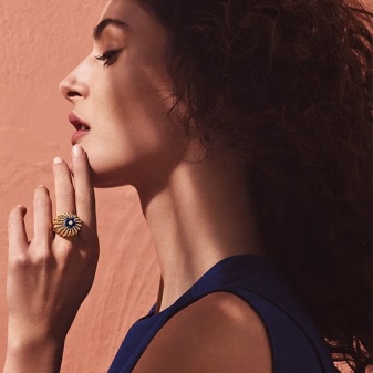 For mysterious and romantic natures, the French company produces charming jewelry from the Love collection. It is represented by flirty little rings in a minimalistic design, decorated with diamond placers and precious stones.