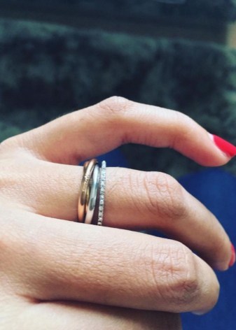 Today, triple rings are wildly popular among newlyweds. This is due to the fact that the concept of fidelity, love and friendship is embedded in each decoration. Each value corresponds to a shade of metal: yellow, pink or white.