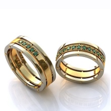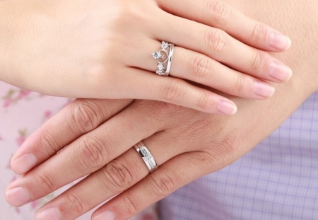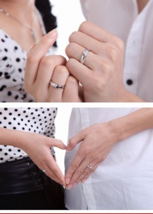 - Most often, couples face the problem that a girl wants a ring with pebbles, and a man without them. This problem is easily solved. Items can be selected from one metal, but the woman is decorated, and the man is a classic option. They will look no less beautiful and harmonize with each other.