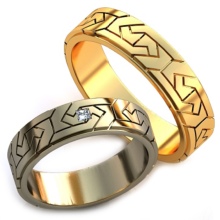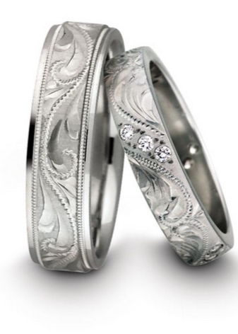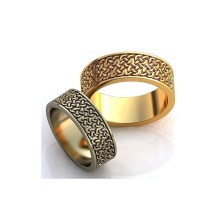 For connoisseurs of native culture, options decorated with Slavic script are offered. These rings are quite wide and ideal for both men and women. Pair rings of this design will make the wedding unusual.