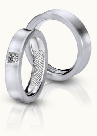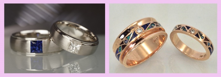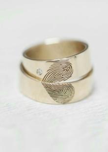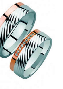 There are types of jewelry fused to each other. It turns out one wide ring with two spaces. An effective solution in this case is white gold or platinum. The decor of such products are large diamonds or diamonds. A similar solution is recommended for mature couples.
