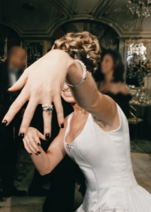 The choice of silver items will emphasize the sophisticated taste of the newlyweds. The silver ring visually extends the hand of the young bride, shows her romantic nature.