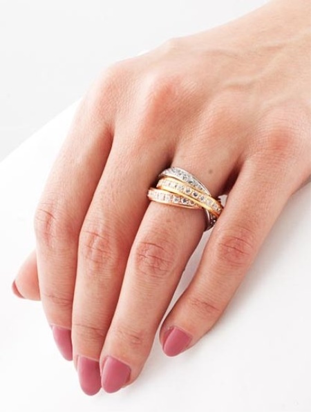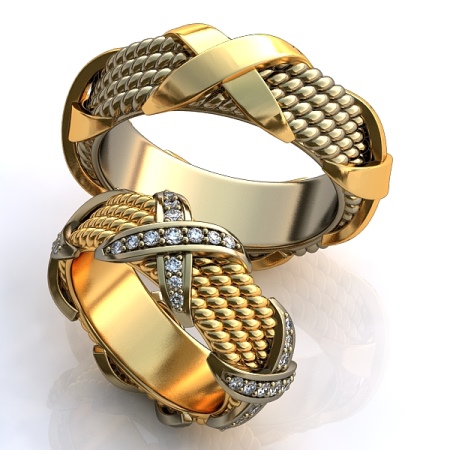 A duet can be chosen from gold of the same color, or from an alloy of different metals. Classic yellow looks interesting with white or red metal. Double rings make either intertwined, or even and welded together. There are also forms bonded to each other in a small chain.