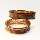 If the quote is quite long, then it can be divided. The first part of the phrase is engraved on the female jewelry, and the second on the male. This idea is perfect for paired rings.