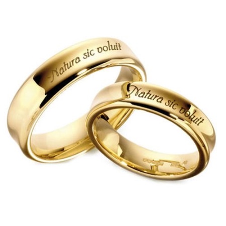 It happens that a very short phrase, for example, “Only you,” in Latin sounds like Noc solum observabis ut. It is quite long, which makes the letters on the ring less, and the cost of engraving more expensive. Nevertheless, the newlyweds in this case give preference to beauty and symbolism.