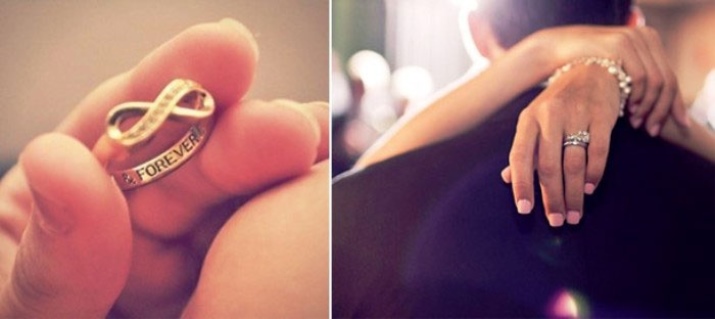 In addition, there is an even shorter version - the symbolic designation of the phrase I ♥ U, which will fit even on the smallest ring.