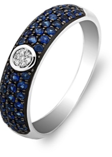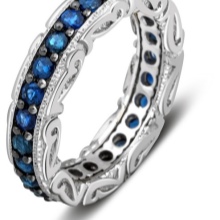 In white gold sapphire looks incomparably. This stone has a deep blue color, which contrasts and brightly stands out against the background of precious metal in light tone. The most saturated and attractive rings are sapphire, complemented with diamonds and cubic zirconias in color.