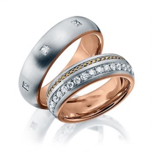 A beautiful and elegant model can be made of yellow or red gold, which has a white metal track on the surface. Such combined jewelry looks very original and interesting, especially if it has a non-trivial design.